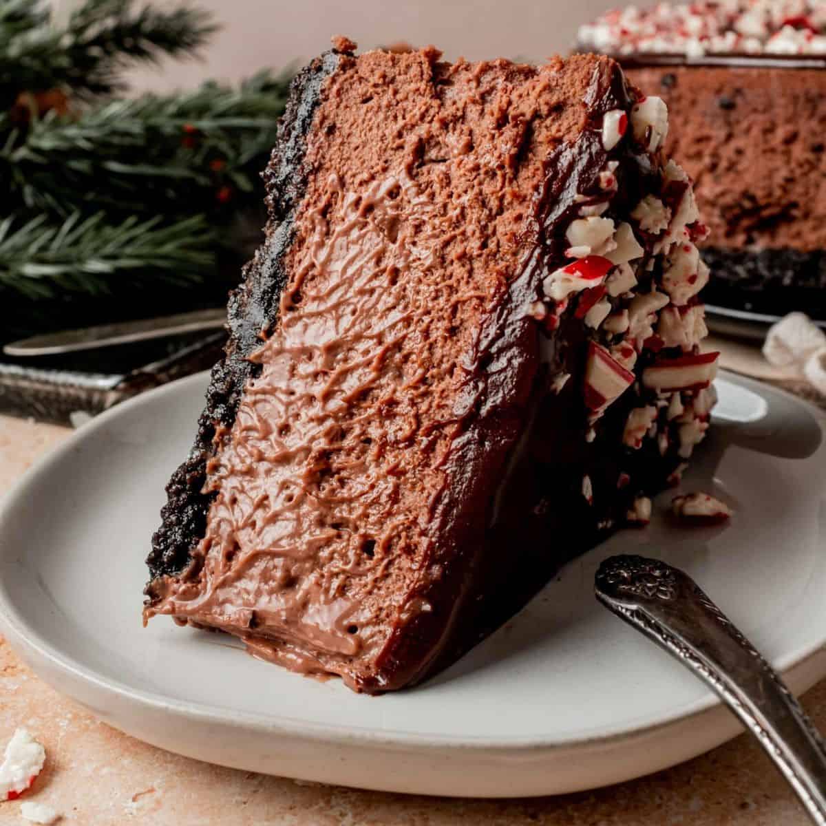 This festive chocolate peppermint cheesecake recipe features a buttery Oreo cookie crumb crust and a creamy chocolate filling studded with crushed candy canes. And it’s all topped with a smooth chocolate ganache for a wonderfully decadent finish.