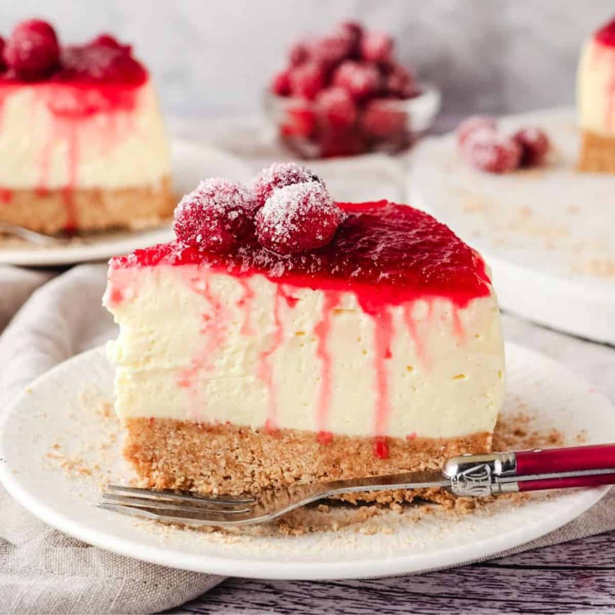 This festive no bake cranberry cheesecake combines a classic no bake cheesecake with a tangy cranberry sauce that's perfect for the holidays.