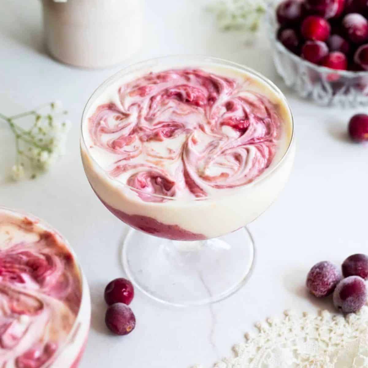 The dessert has a filling which is light and terrifically sweet, made with mascarpone, cream cheese and white chocolate. There’s also a smattering of cranberries to add an extra dimension to the taste and seasonal touch. Lastly, a layer of whipped cream topped with wintery decorations and a sprinkle of icing sugar finishes off the look.