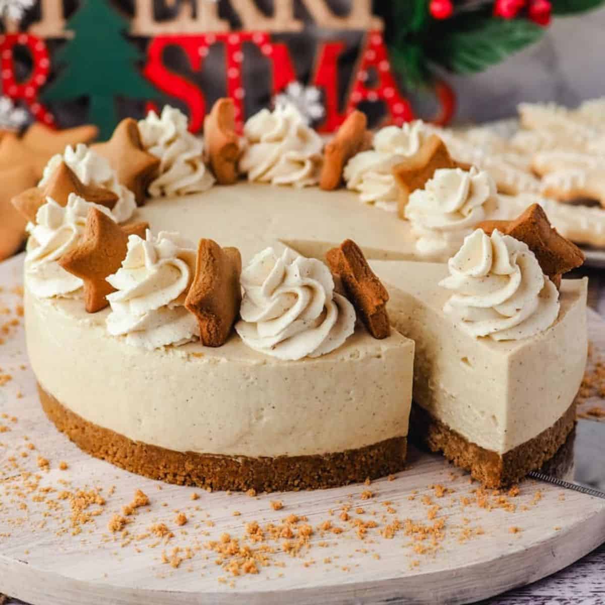Get ready for the holiday season with this no bake gingerbread cheesecake. With a buttery gingerbread crust it's perfect for any festive occasion.