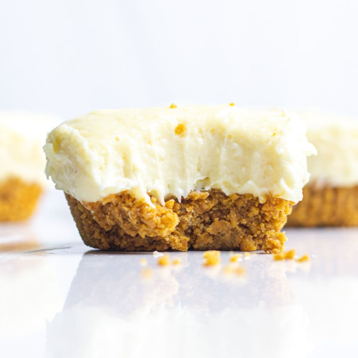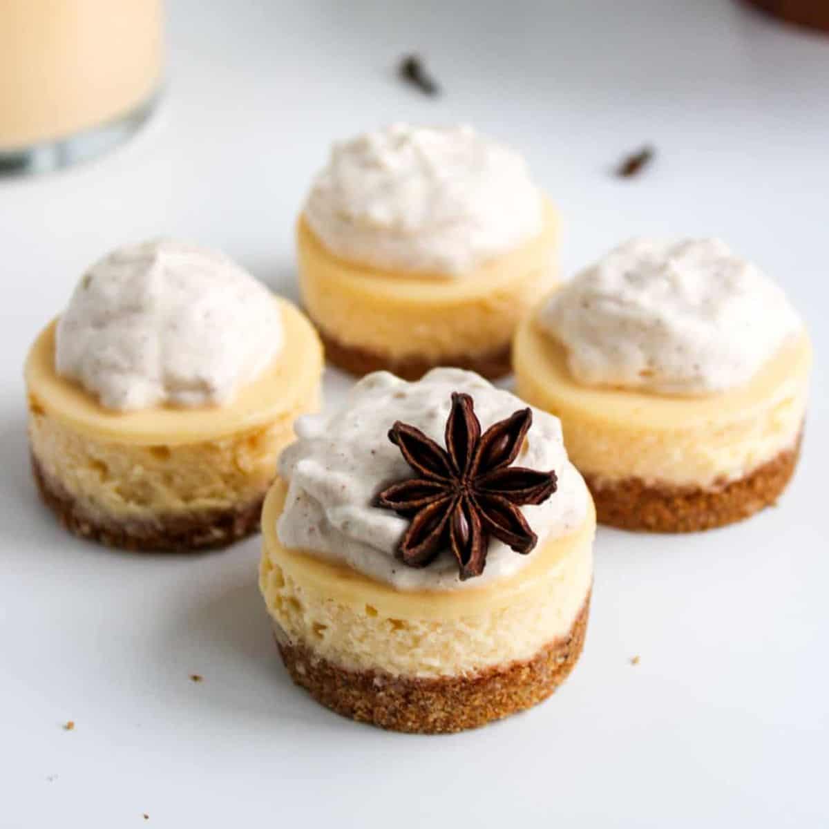 These mini bourbon eggnog cheesecakes have the perfect eggnog flavor, a kick of bourbon, and blend so perfectly with the gingerbread crust, making it a perfect holiday treat! And because they’re no-bake, your oven is free for all your Christmas cookie baking!