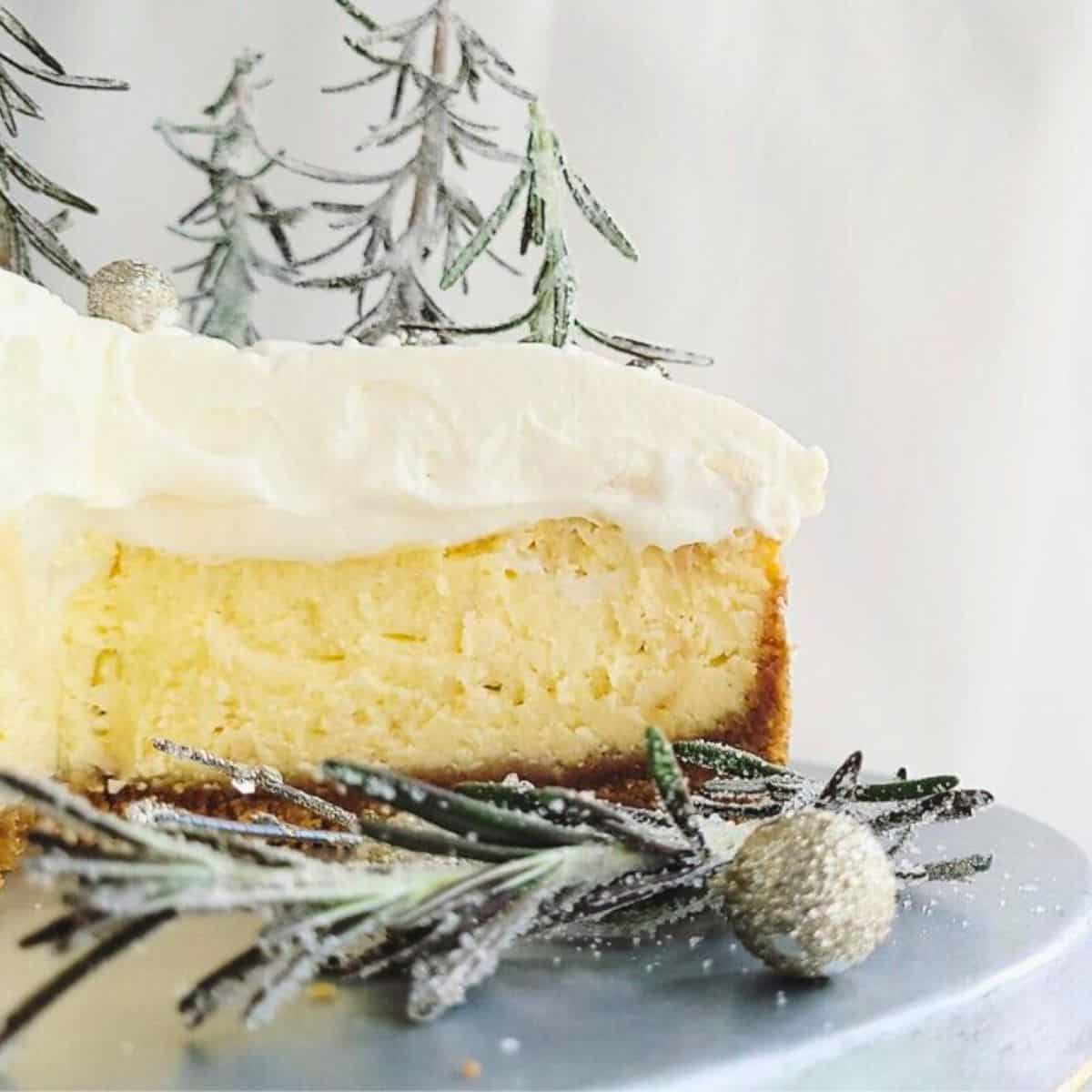 Wow your holiday crowd with a white chocolate Christmas cheesecake. Crafted with a thick graham cracker crust and luscious white chocolate in both the filling and whipped cream, this elegant cheesecake is a show stopper.