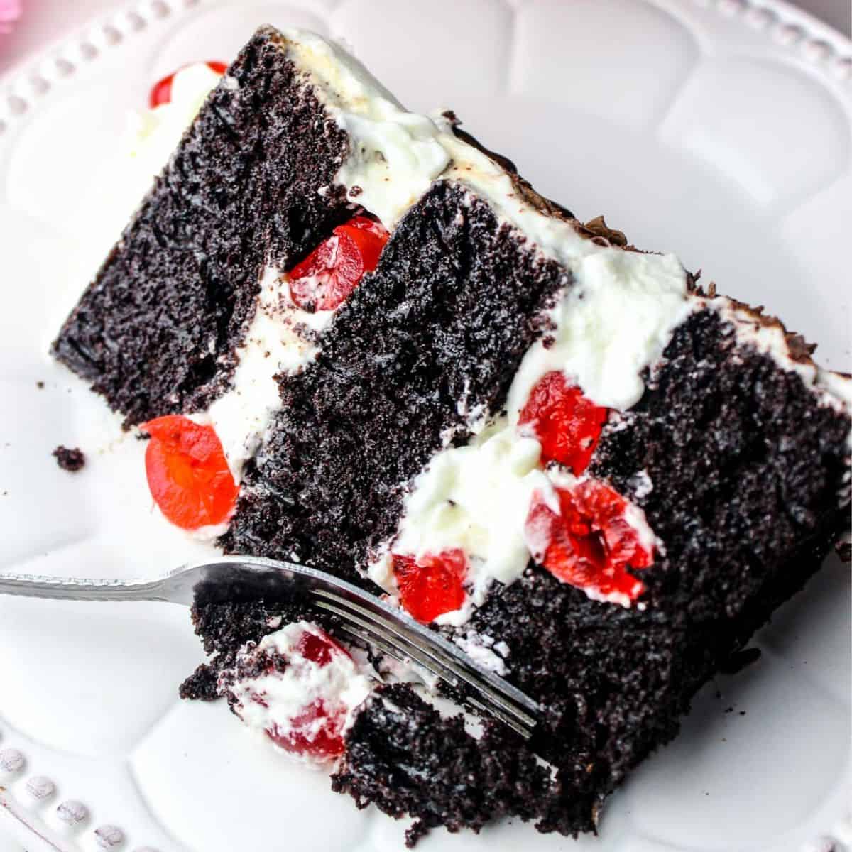 Perfectly moist and sweet, this Black forest cake recipe will have you craving one more bite. With layers of cake filled with homemade sweet cream and chocolate ganache, what more could you ask for in a decadent Christmas dessert.