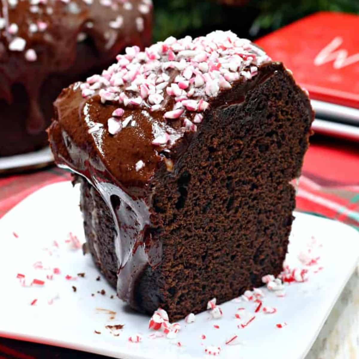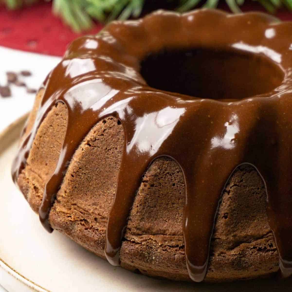 This peppermint mocha Bundt cake recipe takes a rich chocolate peppermint cake and pours a generous amount of homemade espresso ganache over the top for a Christmas cake that is full of holiday flavor.