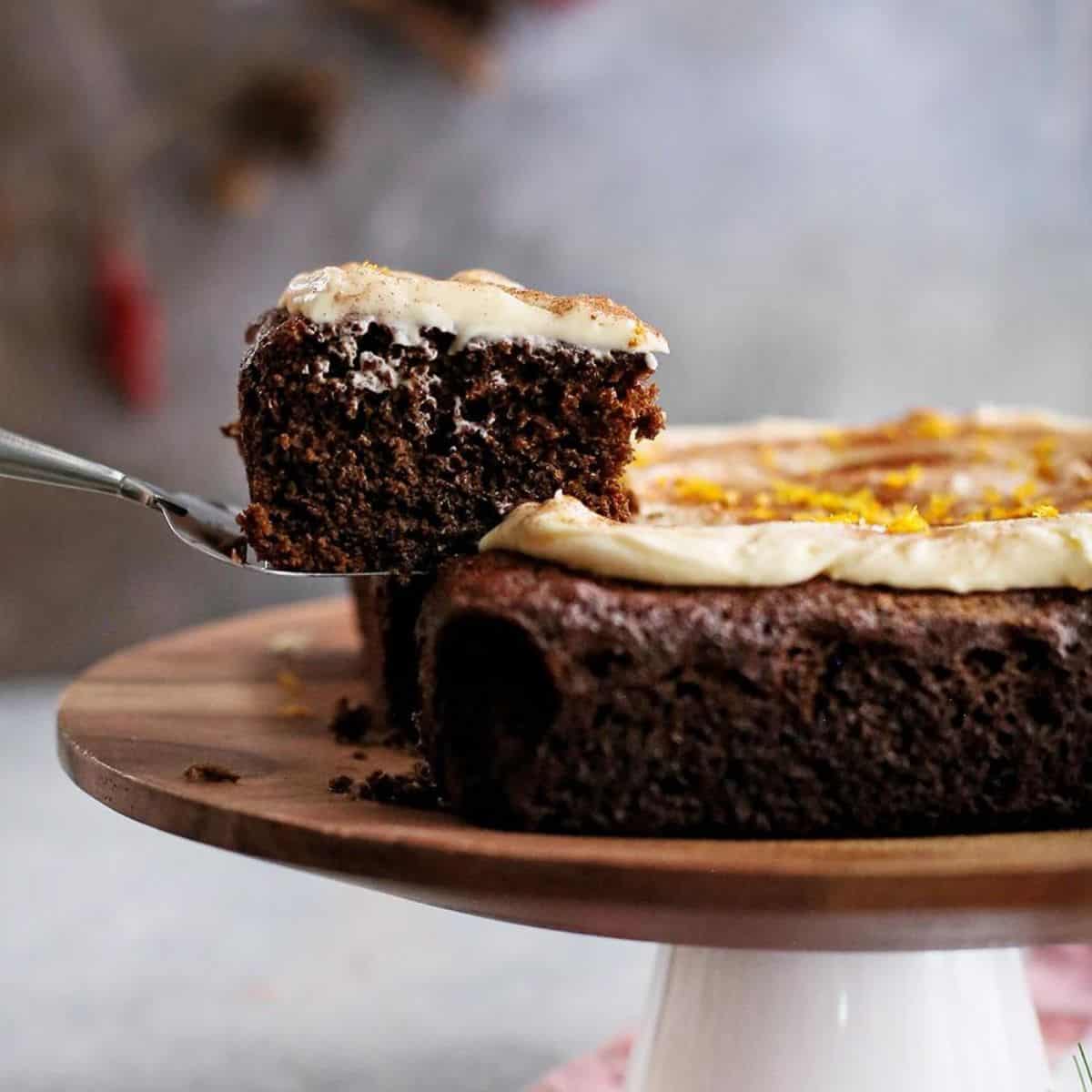 This moist chocolate orange cake is simple to make, tastes fantastic, and combines two favorite Christmas flavors.
