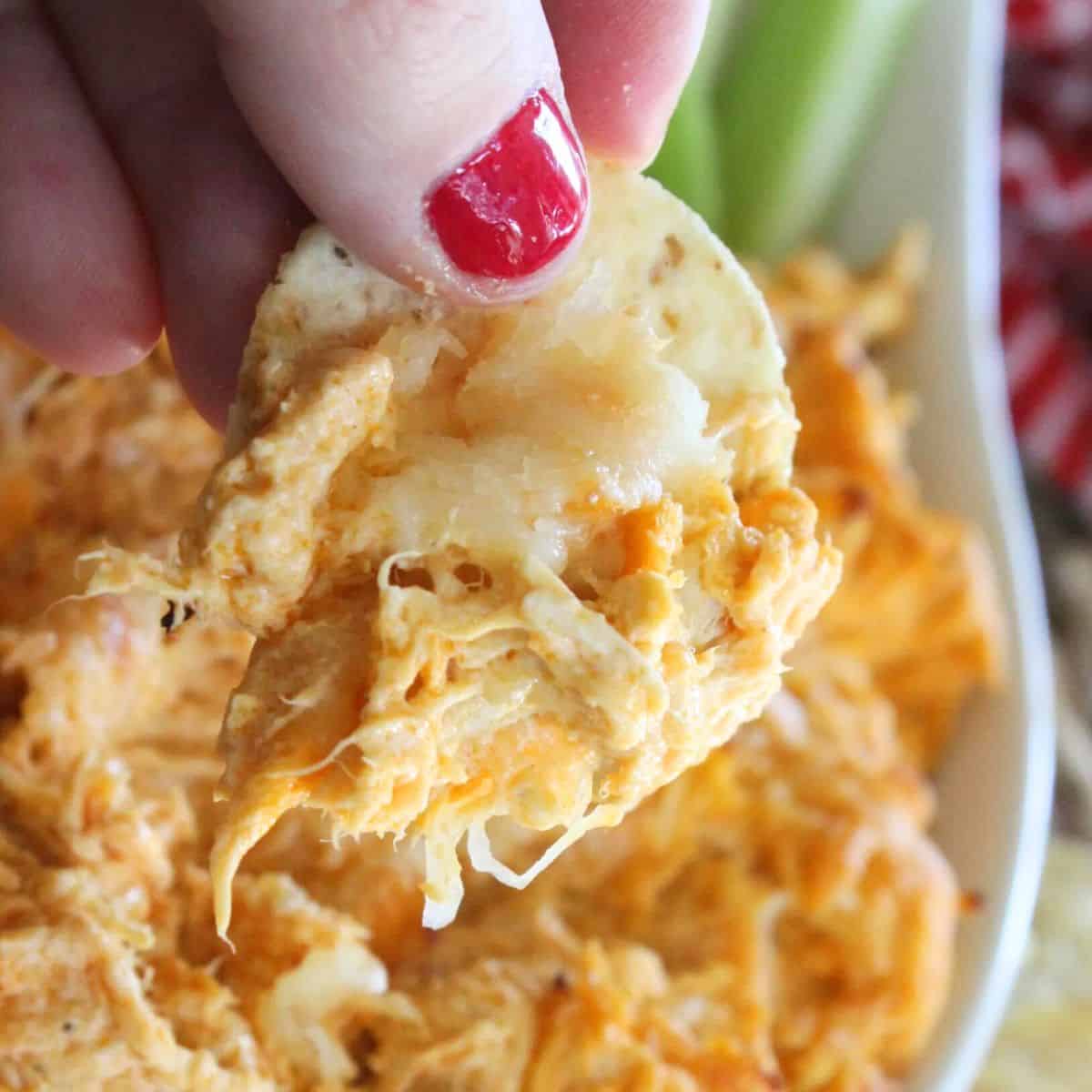 With chicken, buffalo sauce, cheddar cheese and easy package cream cheese, this simple buffalo chicken dip is an easy hot appetizer to make on the fly as well.