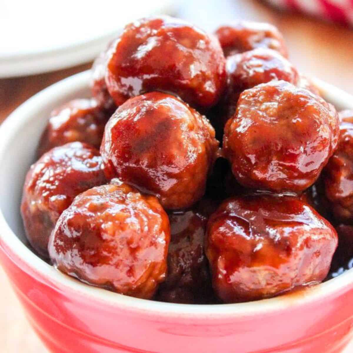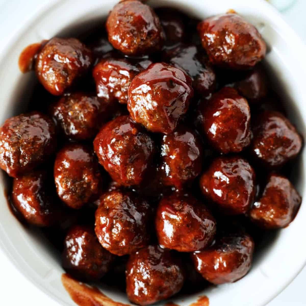 These mouthwatering crockpot meatballs have the perfect balance of sweet and tangy flavors. Only three ingredients and your slow cooker make these the easiest game-day appetizer ever.