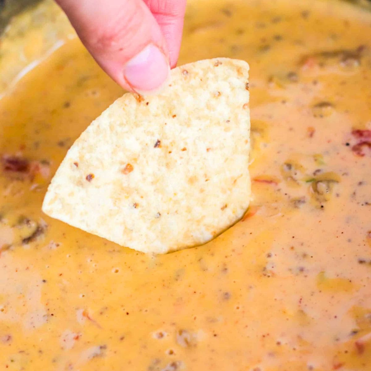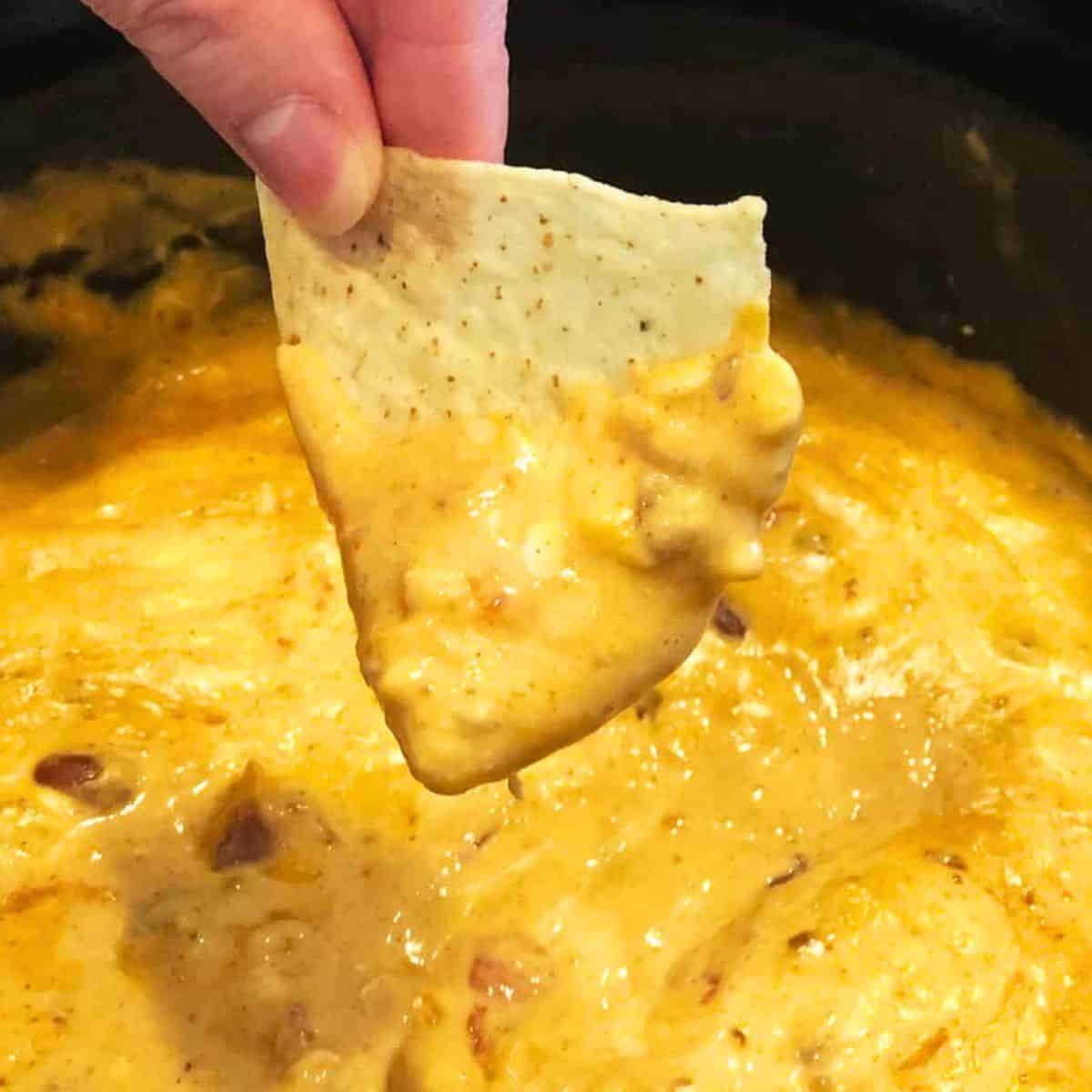 Get yourself invited to all the parties with this simple three-ingredient slow cooker queso dip! It takes about 10 minutes of work for a deliciously spicy appetizer.