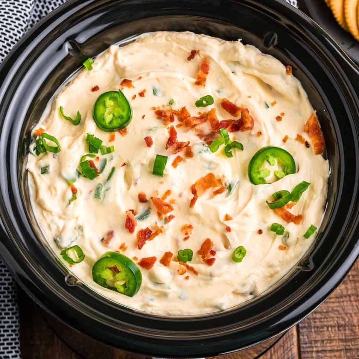 This full-flavored slow cooker jalapeño popper dip recipe offers so much incredible flavor and it pairs well with any dippers, such as tortilla chips, vegetable crudites or crusty chunks of baguette bread.