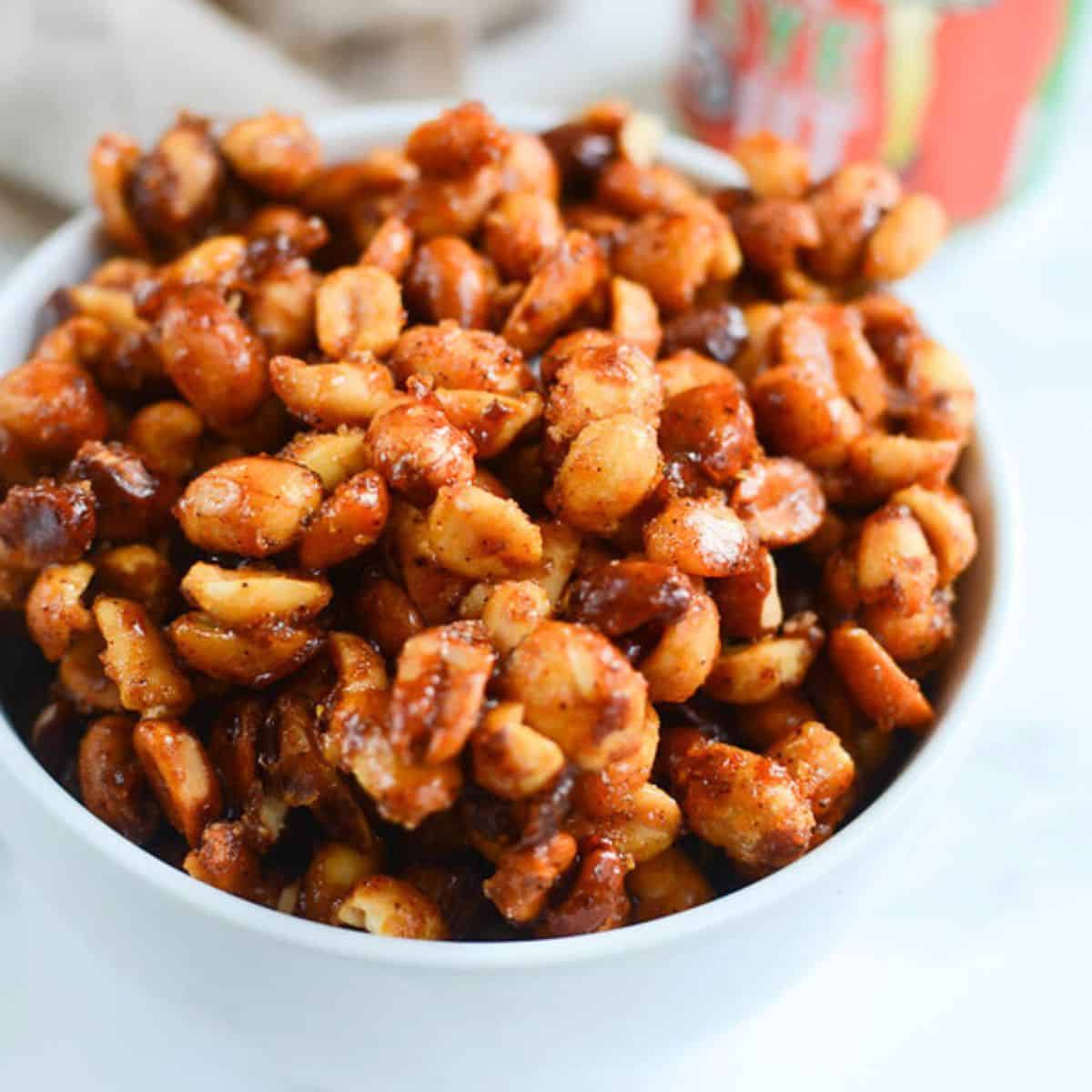 Slow cooker sweet and spicy peanuts is an easy and delicious party snack! Peanuts cooked in butter, brown sugar, sriracha, and chili powder. They are addictive and everyone will be asking for the recipe.