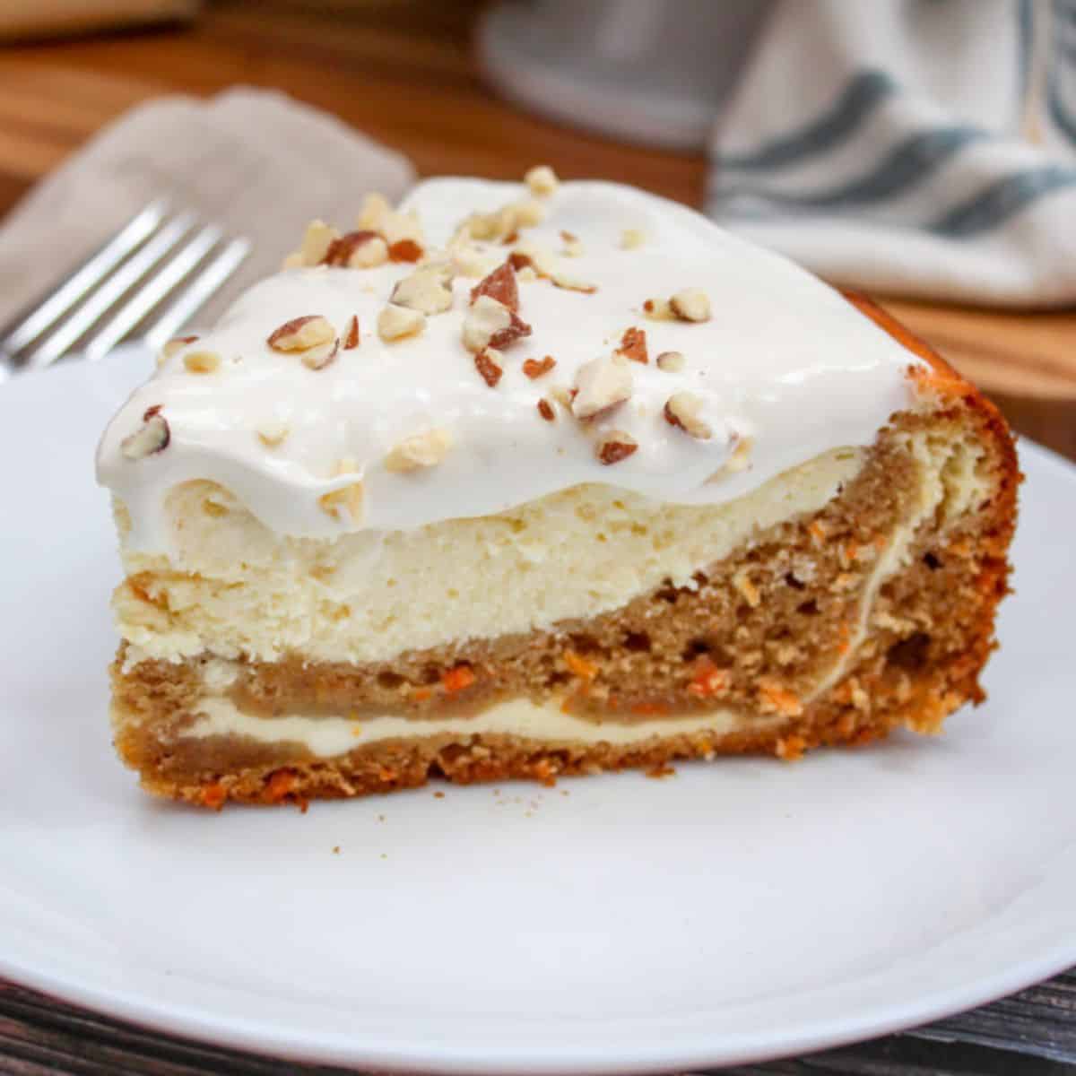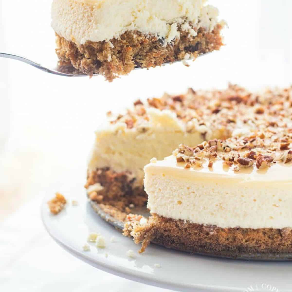 This cheesecake is the best of both worlds: a perfectly spiced carrot cake, swirled together with a rich creamy vanilla cheesecake.