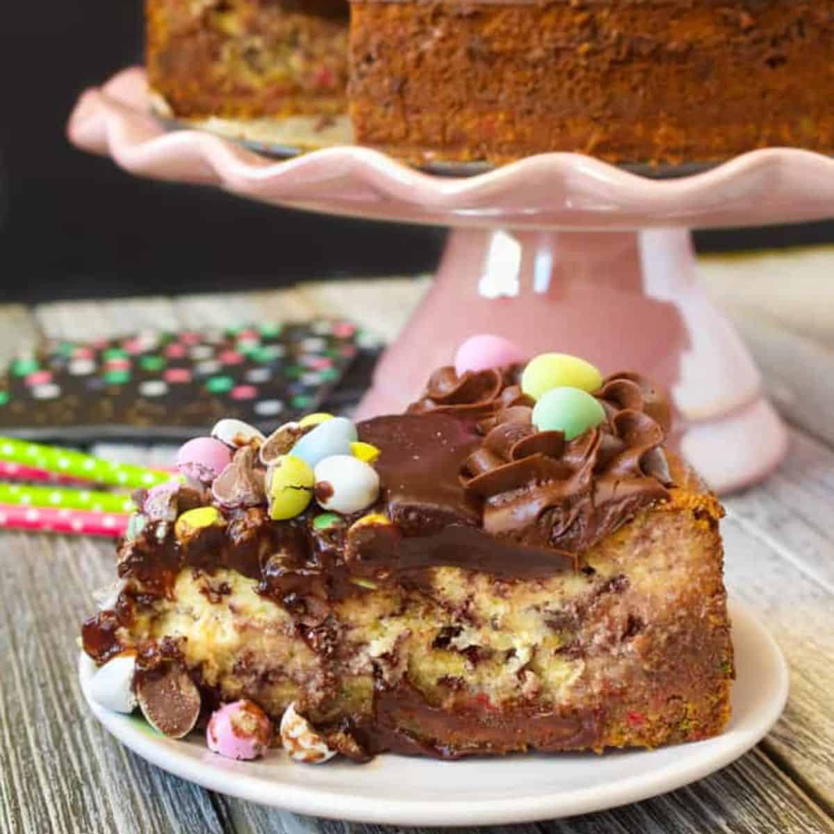 It's topped with chocolate ganache, chocolate frosting and even more mini eggs.