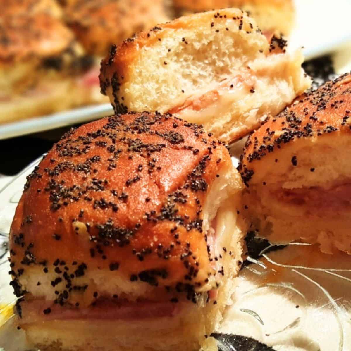 These ham and cheese sandwiches are are made even more delicious with the additional of a special sauce.