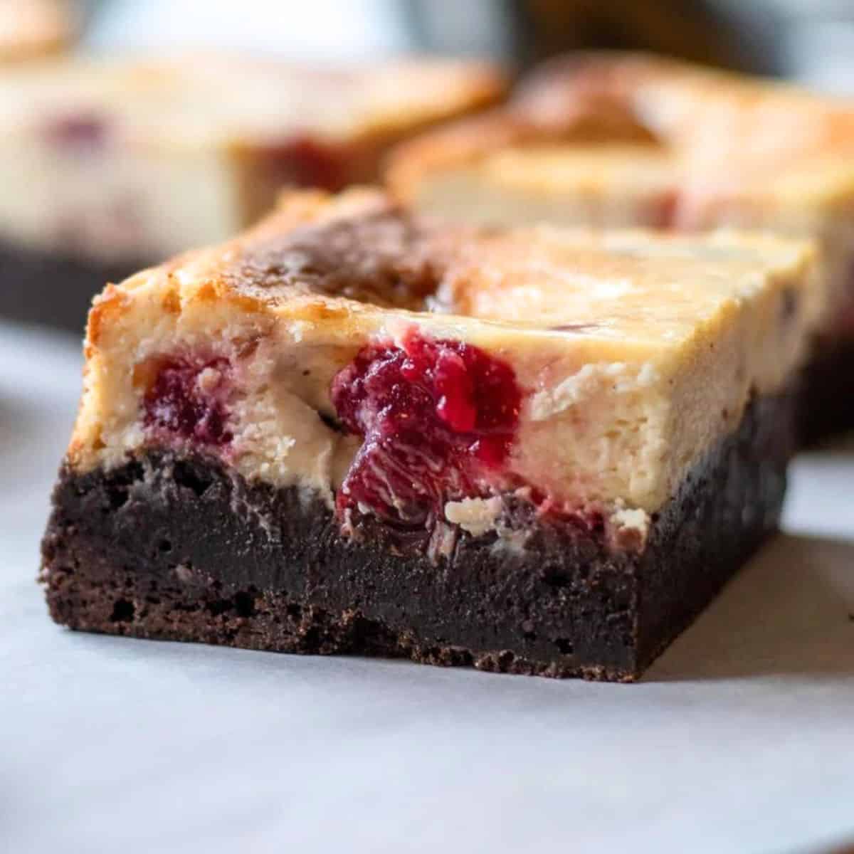 These delicious cranberry cheesecake brownies are the perfect combination of fudgy dark chocolate brownies and creamy and tangy cranberry cheesecake.