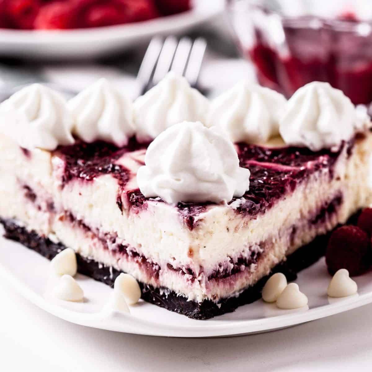 This white chocolate raspberry cheesecake recipe is an absolute dream! It’s a rich, decadent, and smooth New York-style cheesecake that’s not only better than restaurants but also perfect for making ahead and freezing.