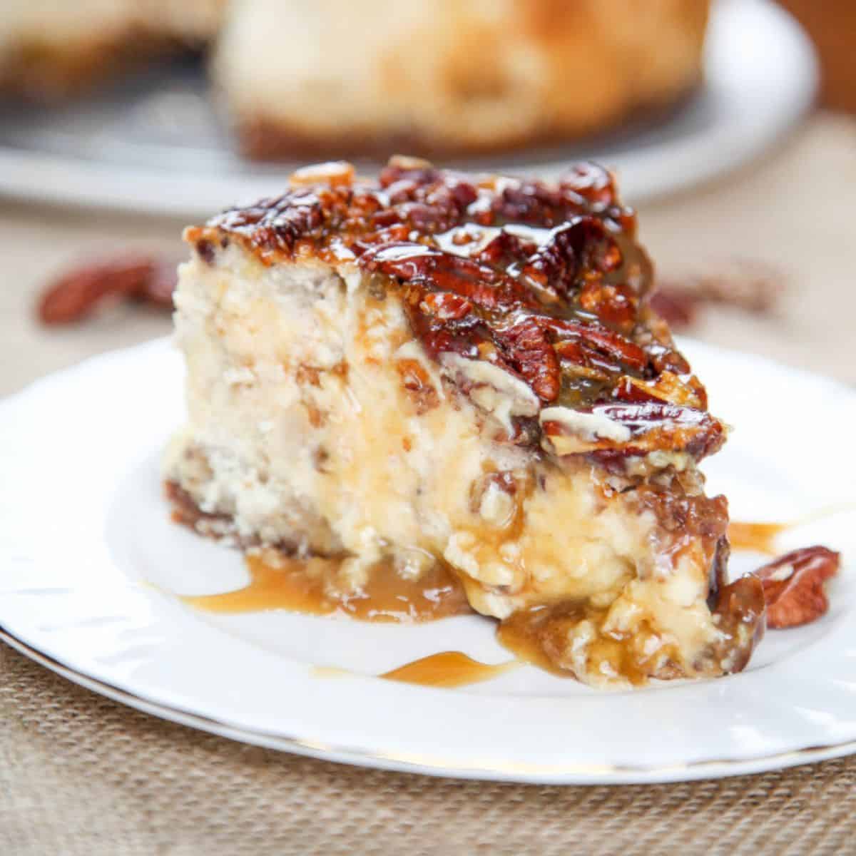 Creamy brown sugar cheesecake topped with a decadent pecan pie filling. This pecan pie cheesecake tastes just like your favorite holiday pie.