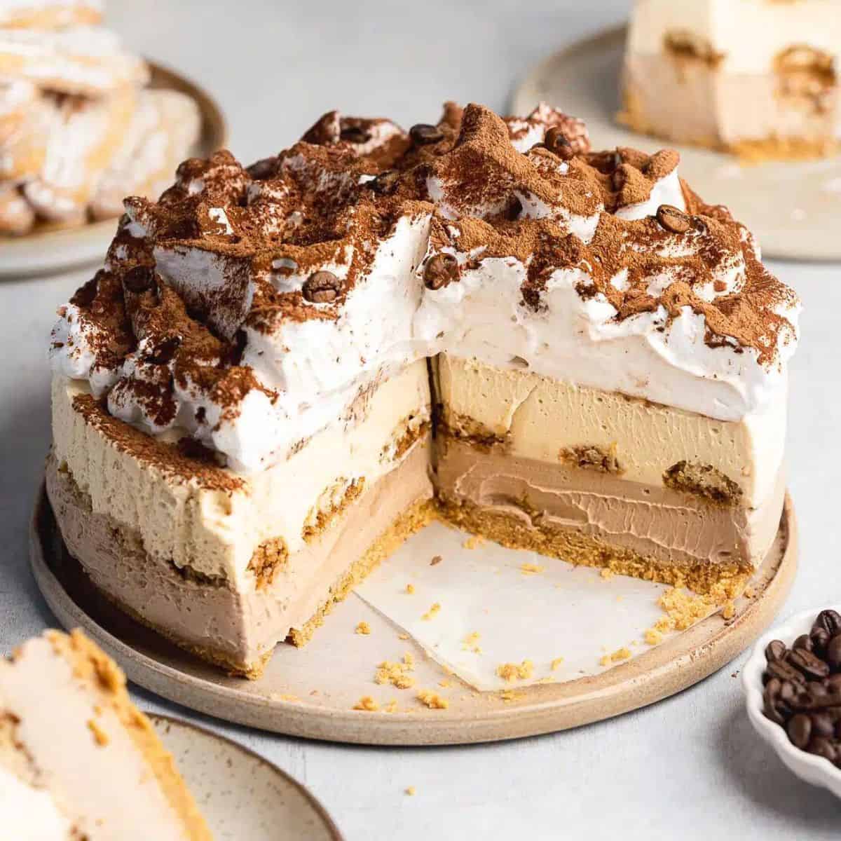 This vegan no-bake tiramisu cheesecake is crafted with layers of velvety vanilla-rum-infused mascarpone and coffee-infused cheesecake atop a crumbly, no-bake biscuit base. This showstopping dessert marvelously blends the iconic flavors of tiramisu with the rich, smooth texture of cheesecake - all without any dairy or eggs.