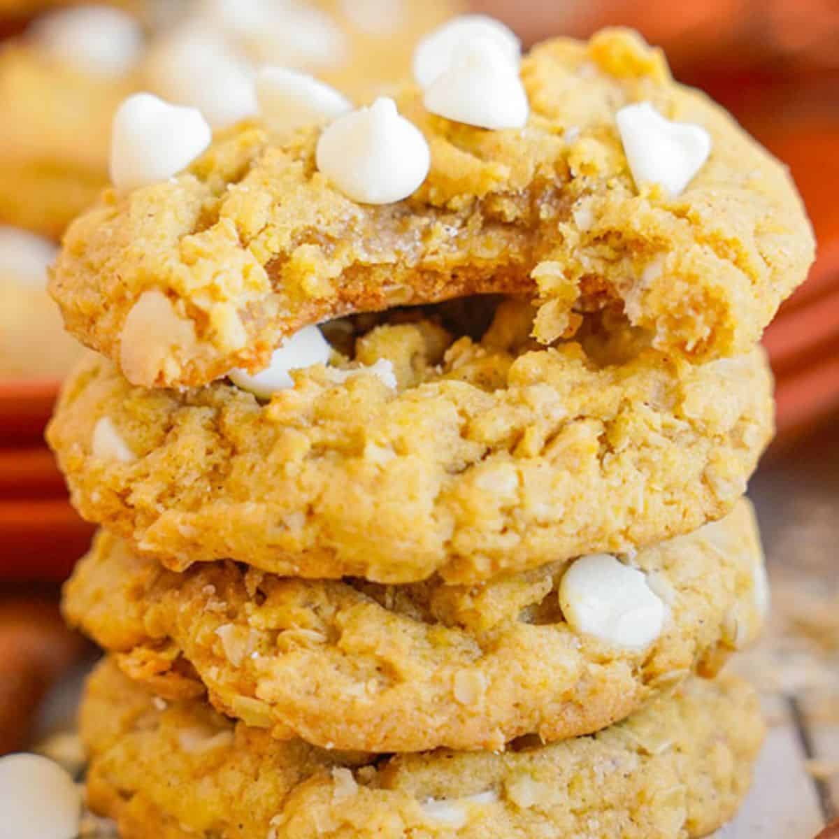 These perfectly soft pumpkin oatmeal cookies are full of sweet white chocolate chips, tender oats, and plenty of pumpkin-tastic flavor! This fall update on a classic is easy to make and even easier to eat.