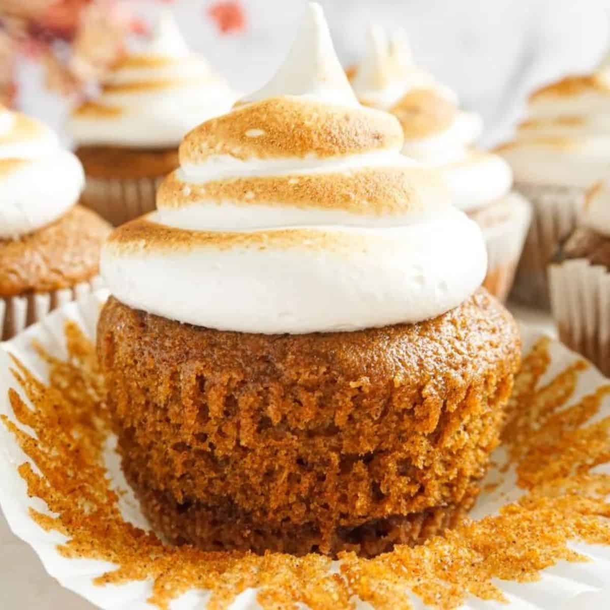 These beautifully spiced pumpkin cupcakes have a gingersnap cookie crust and homemade toasty marshmallow frosting.